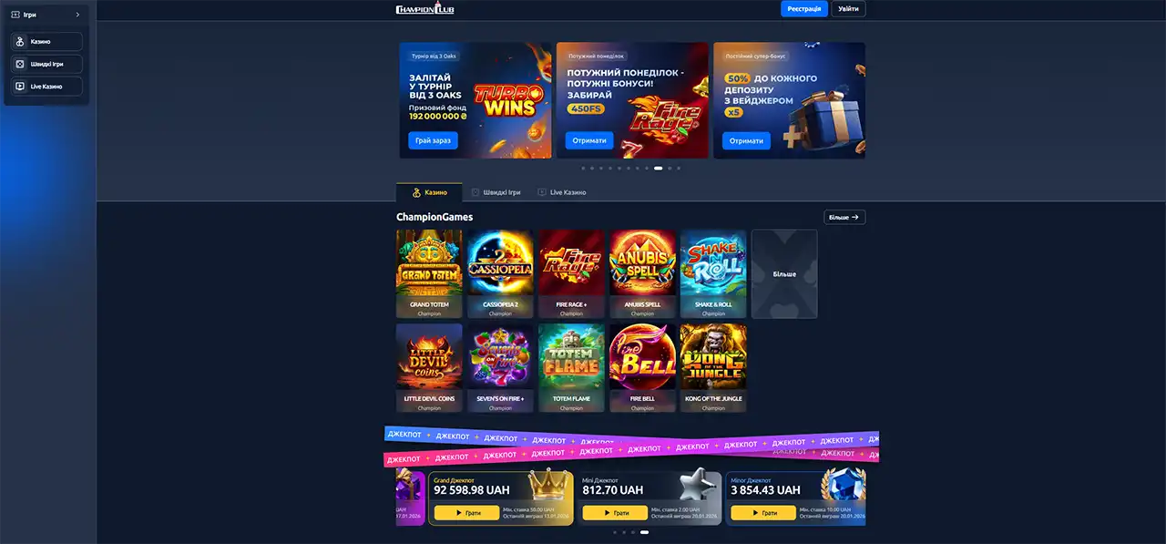 Чемпіон Клаб — офіційна інформація про онлайн-казино України